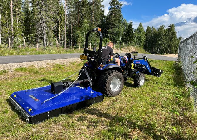 Farmtrac -pientraktorin perässä vesakkoraivain