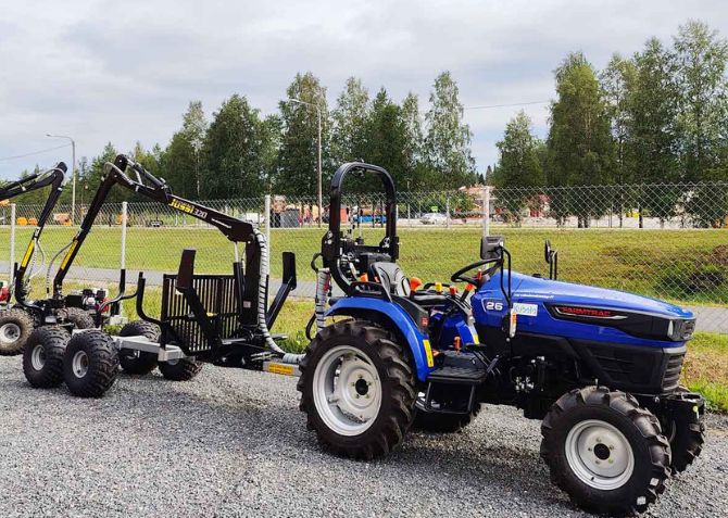 Farmtrac -pientraktori ja Vahvajussi -metsäkärry muodostavat yhdessä metsäkoneen
